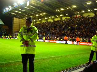 ポーツマスでUEFAカップ初観戦(3)スタジアム情報メインページへ2008年11月27日、いよいよACミランとの劇戦のはじまりです。増々強まる雨足と寒さではありましたが両チームの戦いは見応えのある内容でした。フラットンパークは熱い声援と嘆きのため息の交錯する試合となりました。 ●フラットンパークで熱戦を展開当日は夕方から最悪の天気。時折止む時はあるものの雨足はかなりの強さになる時もありました。今回クラブカードで入場しましたが他のスタジアム同様ゲートに設置されたセンサーに差し込んで青ランプがつけばゲートを押して入場するタイプです。中に入ると本当にその古さが伝わってきますがそれでもサッカー専用のスタジアムでキャパも2万人少々とどこに居ても見渡せるスタジアムです。何となくエバートンの本拠地のGOODISON PARKに似ていると感じましたがどうでしょうか。さて私はコーナー近くの前から2列目の絶好の席ながら残念ながら最前列と2列目はぎりぎり雨に濡れる位置。多少風もあったため最悪の状況での観戦でした。また席に角度がないため反対側のゴール付近に行くボールは非常に見にくいため身を乗り出す必要があります。 試合ですがACミランは3連勝を狙ってアウェーでのポーツマス戦に臨みました。ところがホームのポーツマスが2点を先取。残り10分を切って苦しい2点差でしたがミランは後半途中出場のロナウジーニョがFKをゴール右隅に決めて1点差。更にロスタイムにインザーギが同点ゴールを決め苦しい試合ながら引き分けに持ち込んだミランでした。地元のファンの落胆ぶりはそれは凄まじいものがありましたが試合終了後にはロナウジーニョ、カカの両選手がアウェーサポーター側にも挨拶、これに対し暖かい拍手を送り返したポンピーには心温まるものがありました。 (おわり)